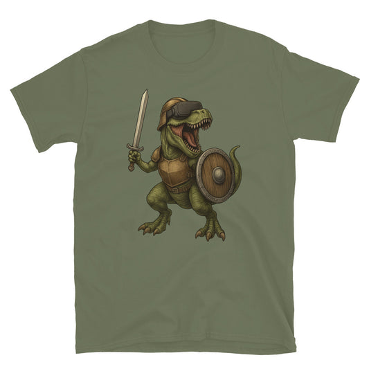 Gear up for adventure with the “T-Rex VR Sword, Shield, and Armor” T-Shirt — a bold and imaginative design that brings medieval fantasy into the world of virtual reality. Perfect for dinosaur lovers, VR gamers, and fans of epic battles, this tee makes a legendary addition to any wardrobe. Made...